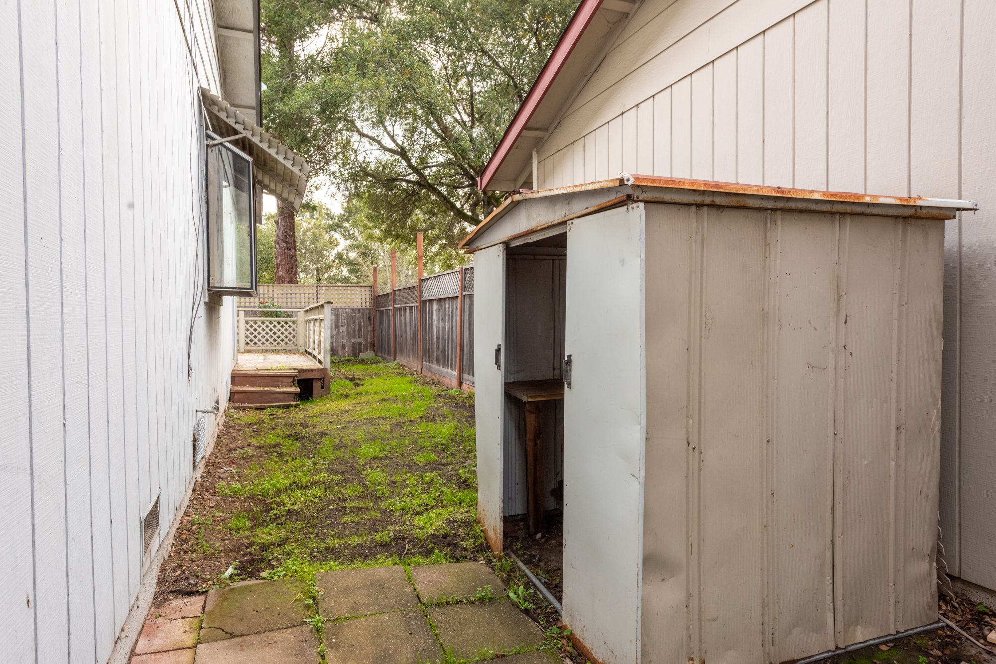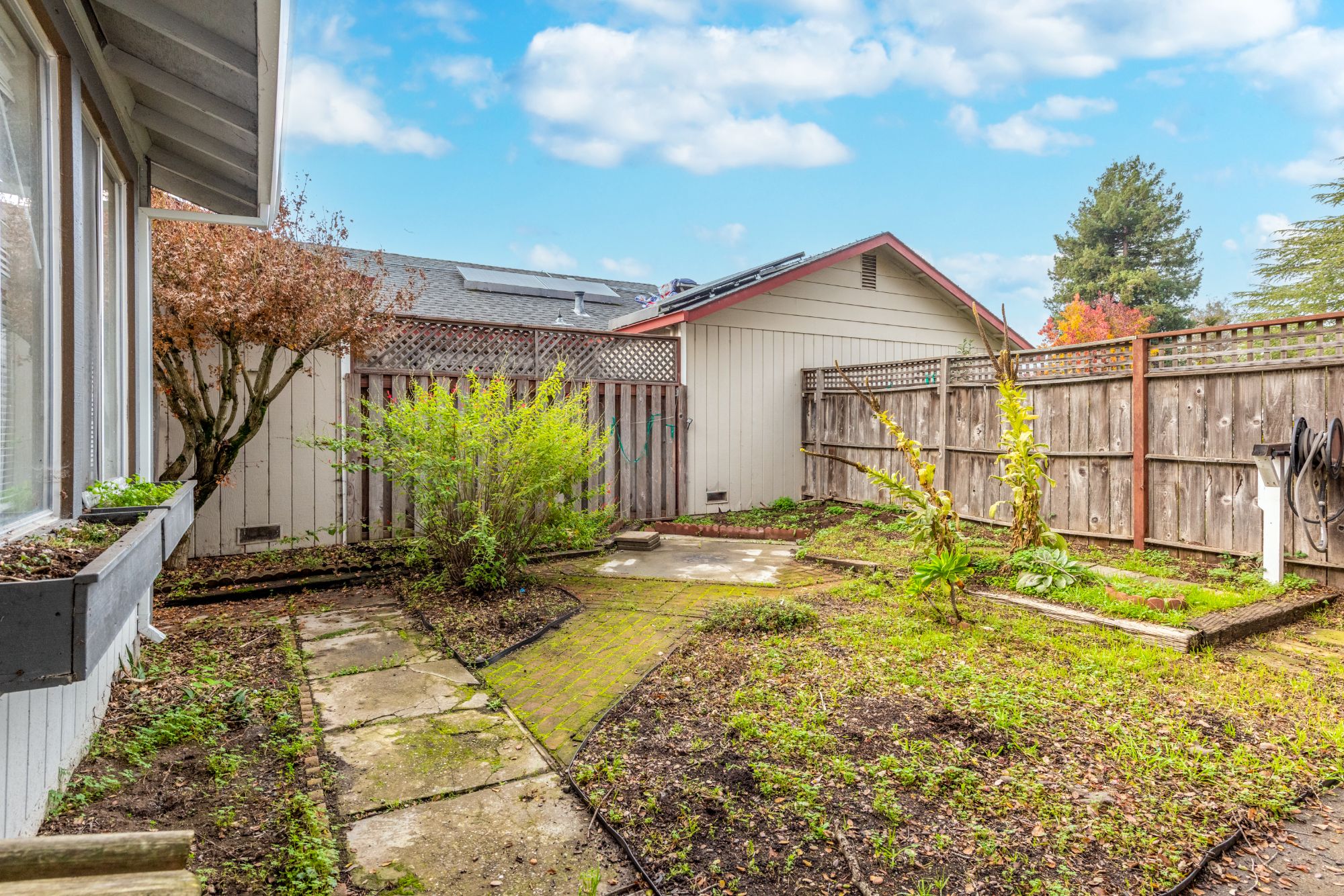 This single-story home in the Copperfield neighborhood is ready for your improvements. Copperfield residents enjoy access to a pool, green space, and basketball courts. This property backs up to the Santa Rosa Creek Trail and is on a cul-de-sac with a private backyard. The third bedroom has been opened up to the kitchen, but could easily be converted back into a bedroom again. This home features vaulted ceilings in the living room and kitchen, and is equipped with a newer furnace (installed in 2023).